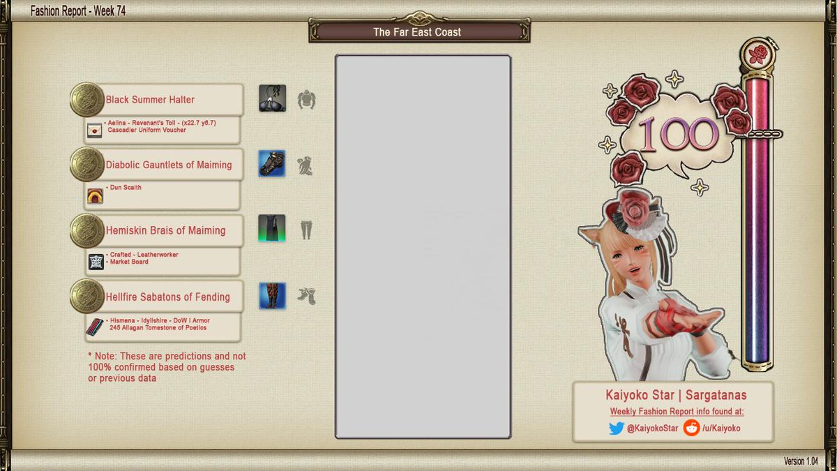 Ffxiv Fashion Report Reddit Kaiyoko : Ffxiv Fashion Report Guide And Rewards Week Of May 7 To 11 Millenium - Another report i actually bothered getting 100 points on due to the relative easy of acquiring everything.